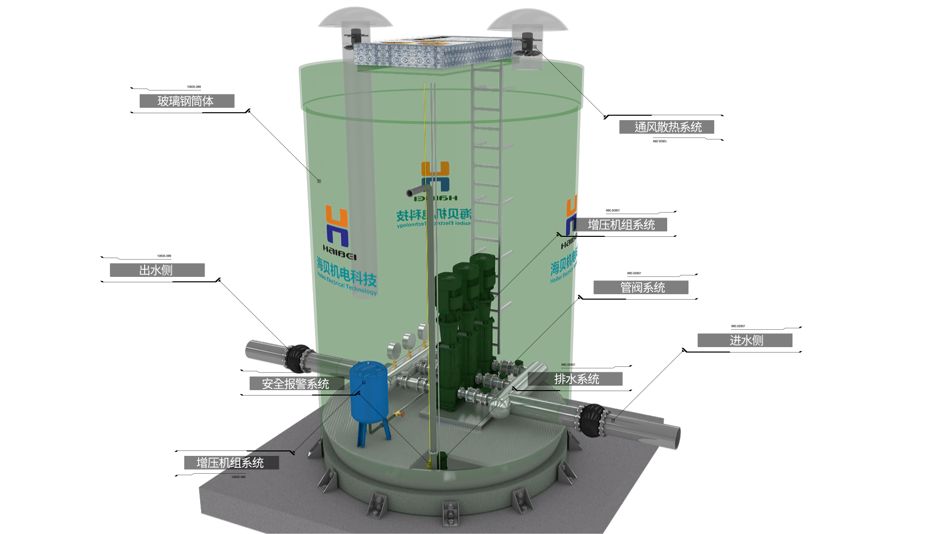 (3)壓力水箱設計:包括壓力水箱的結構型式、平面尺寸、高度等。